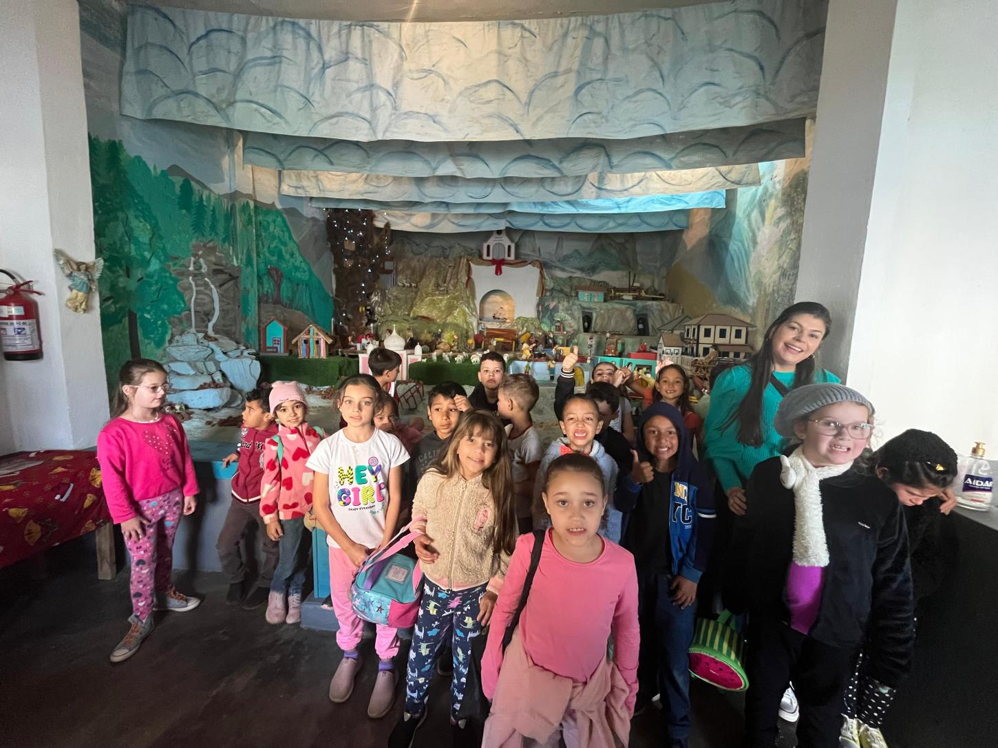 A programação incluiu visitas ao Presépio Tradicional de Jaciguá, à Igreja São João Batista, ao Mirante, à EMEB Itabira e à Cachoeira do Elói — pontos simbólicos que expressam a riqueza histórica, cultural e ambiental da região. Em Concórdia, os alunos foram calorosamente recebidos pela professora Cirlene Cândido da Silva Mozer e pela equipe da EMEB Itabira, onde participaram de atividades integrativas e viveram um dia marcante de conexão com suas raízes.