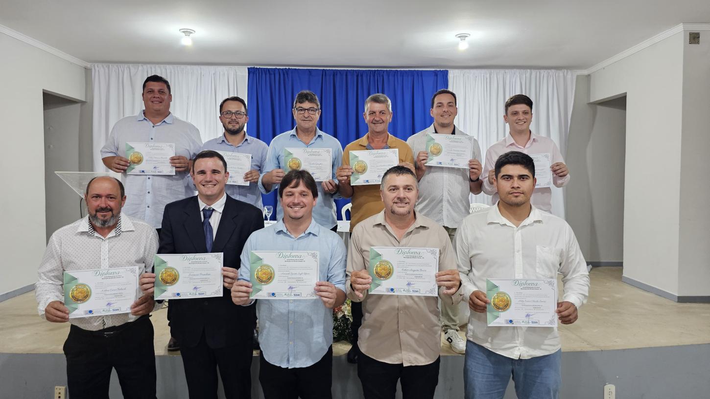 O prefeito eleito de Alfredo Chaves, Hugo Luiz Pícoli Meneghel (PP), e o vice, Cleber Bianchi (Clebinho), foram diplomados pela Justiça Eleitoral na tarde desta sexta-feira (13), em cerimônia realizada no auditório do Centro de Referência da Assistência Social (Cras). No mesmo evento, os vereadores eleitos e os suplentes também receberam seus diplomas.
