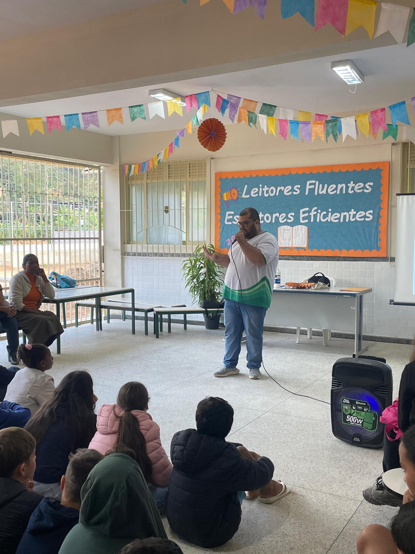 O evento teve início com a palestra “Educação Inclusiva: o que é? Por quê? Como fazer?”, ministrada pelo professor e intérprete de Libras Charles de Castro Leite. A apresentação trouxe uma abordagem crítica e humanizada sobre os desafios e as possibilidades da educação inclusiva no cotidiano escolar, destacando estratégias de ensino que valorizam os diferentes modos de aprender e a atuação colaborativa entre os profissionais da educação.