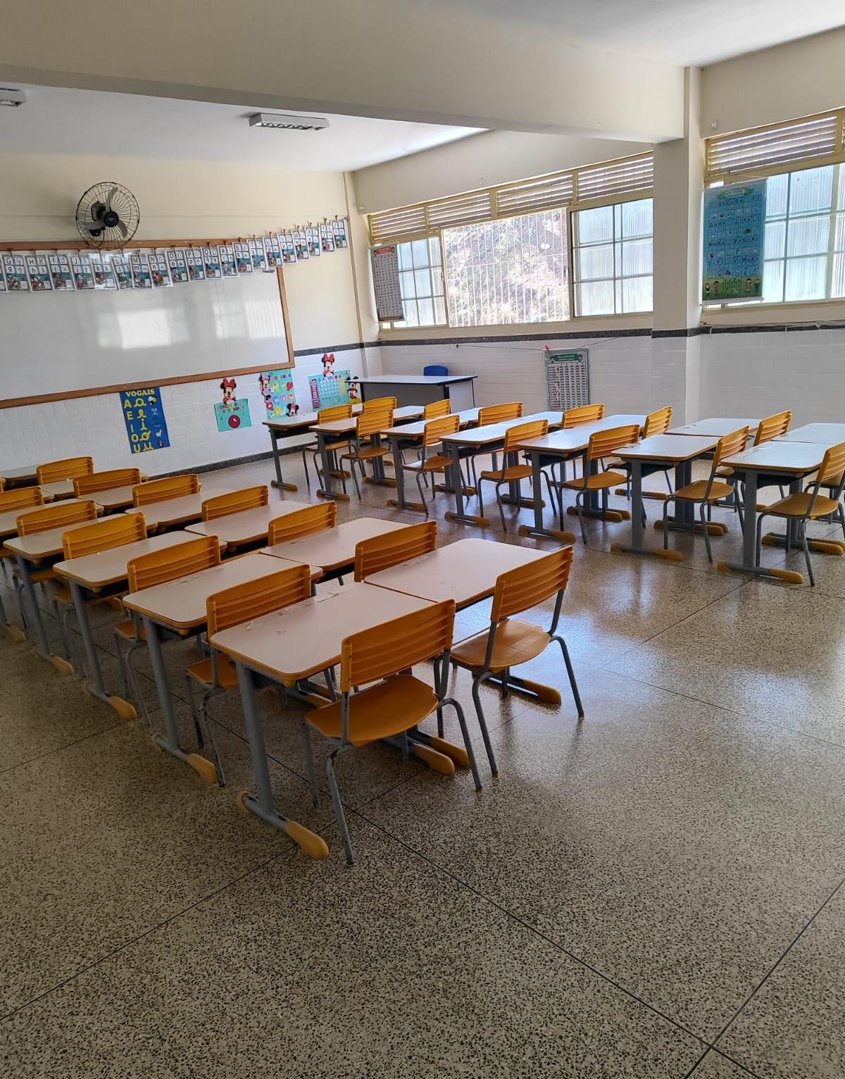 A intervenção abrangeu salas de aula, corredores, pátio interno, laboratórios e até o depósito da escola.