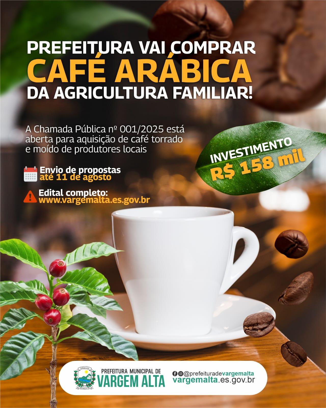 A Prefeitura de Vargem Alta (ES) publicou nesta quinta-feira (25) a Chamada Pública nº 001/2025, com o objetivo de adquirir café arábica torrado e moído diretamente de agricultores familiares, associações e cooperativas locais. A medida busca garantir um produto de qualidade para o uso institucional das secretarias municipais e, ao mesmo tempo, injetar recursos na economia rural do município.