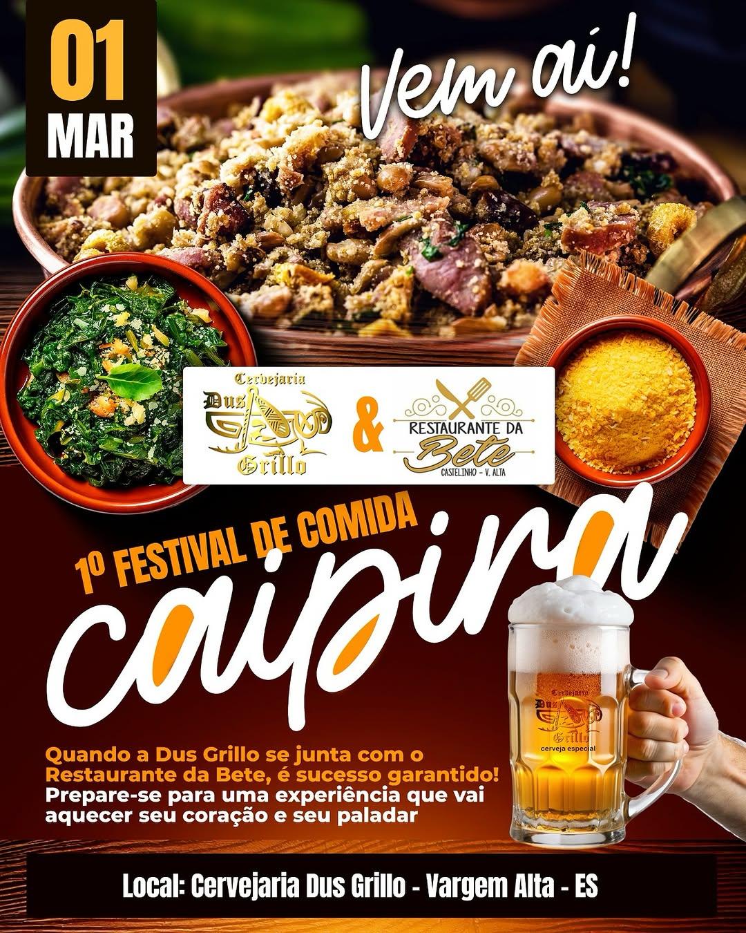 No próximo dia 1º de março, a Cervejaria Dus Grillo, localizada em Vargem Alta (ES), será palco do 1º Festival de Comida Caipira. O evento, realizado em parceria com o Restaurante da Bete, promete reunir sabores típicos da roça em um ambiente acolhedor, acompanhado de boa música e opções variadas de cerveja artesanal.