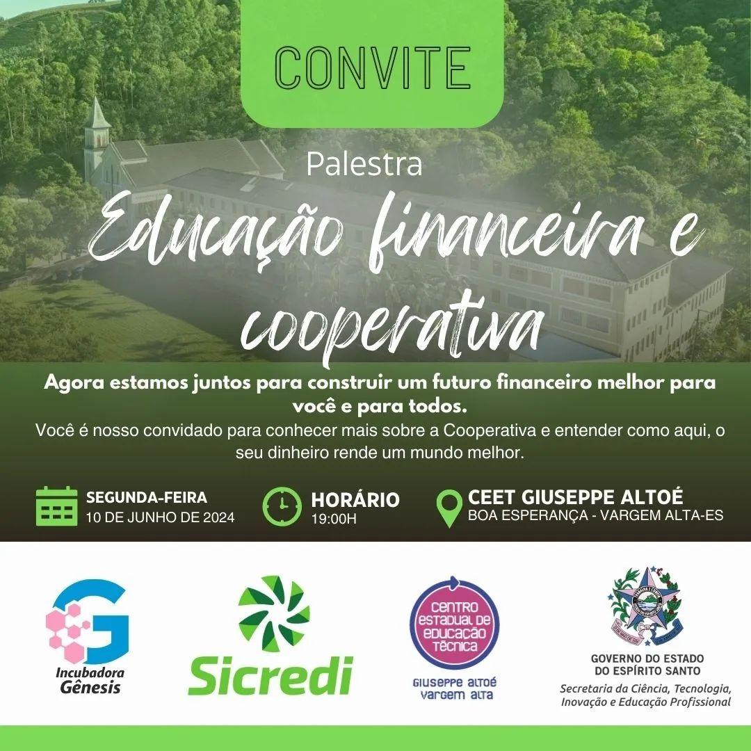 Na próxima semana , na segunda-feira (10), os moradores em de Vargem Alta e região, terão a oportunidade de participar de uma palestra essencial sobre educação financeira e cooperativa. O evento, que ocorrerá às 19h no CEET Giuseppe Altoé, localizado em Boa Esperança, no distrito de Jaciguá, promete oferecer insights valiosos sobre como construir um futuro financeiro mais seguro e próspero para si e para a comunidade.